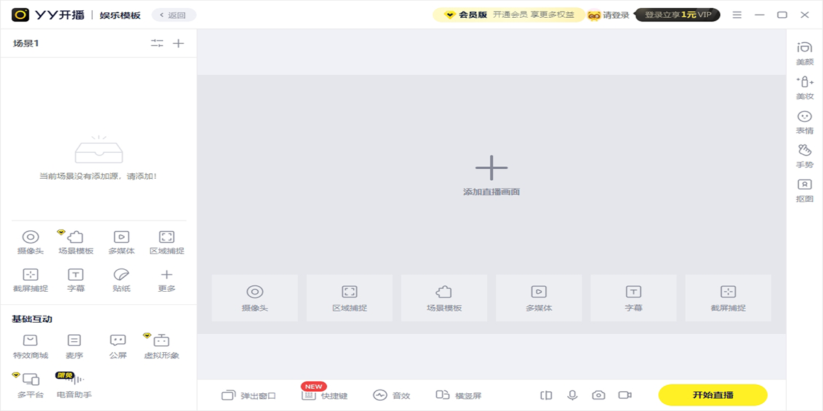 YY开播是YY的直播伴侣,娱乐/游戏直播,只需要用YY开播就能轻松搞定,不管你是娱乐直播还是游戏直播都能用YY开播,同时支持第三方设备调用YY开播作为摄像头!
